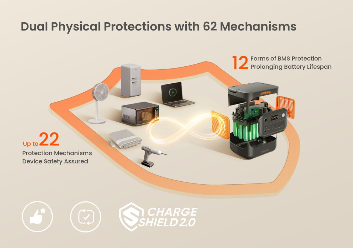 Stay prepared for blackouts with powerful yet effortless power. The lightest and smallest 3kWh LFP solar Generator/power Station with 3600W output, effortlessly provides almost 100% essential backup for your family. Always prepared for storms and quakes with Jackery's patented ultra-low self-discharge and UPS technology. Resilient against bumpy roads, dust and -40°F, it delivers power wherever you need it.